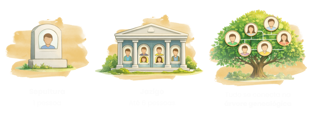 Adquira um jazigo exclusivo e garanta 6 sepulturas, cada uma com um memorial digital individual e cheio de recursos para preservar histórias, lembranças e conquistas. Cada uma das 6 sepulturas inclui: